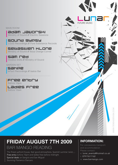 The LUNAR Future Music team was organising parties in Bar Mango, Reading, and this was the last summer event on 7th August 2009. Friend and collaborator Sound Gypsy was asked to play the main room while Sahpe hosted the Gerden area from 1 till 4am! The Garden filled with people dancing and jumping up and down till the end, begging the overseeing bar manager to allow for one last tune at 4am! And so he did...!